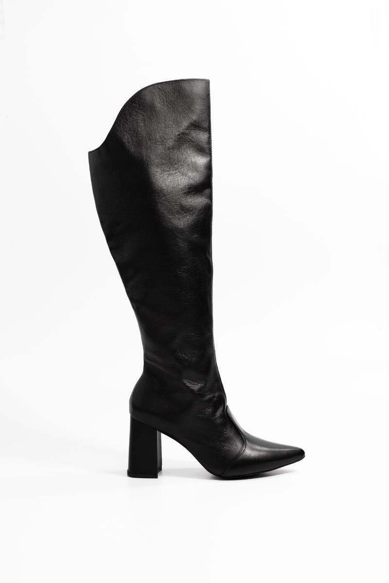 Chegou a estrela que vai transformar qualquer look: a bota Vanucia de cano alto com recorte assimétrico. O design inovador eleva o visual e valoriza a silhueta, enquanto o zíper lateral facilita na hora de calçar ? sem abrir mão do estilo.