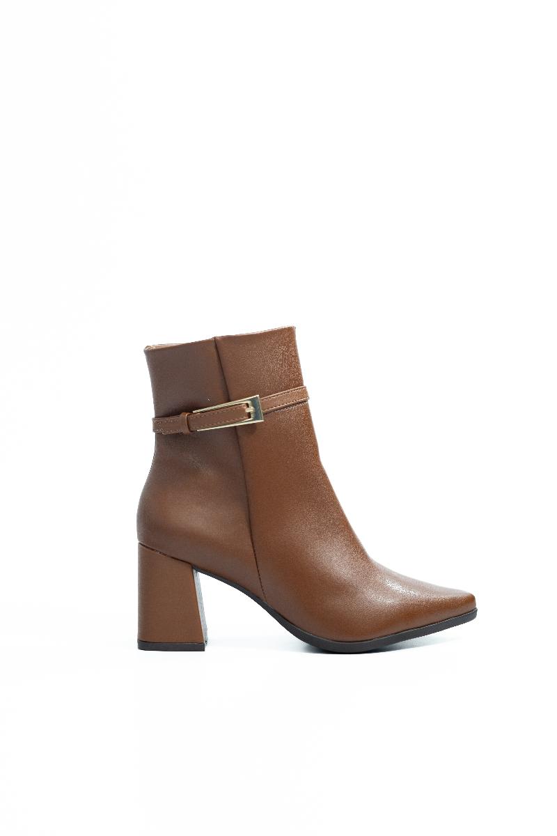 Bota Marrom com Salto Bloco e Fivela Dourada - Vanucia