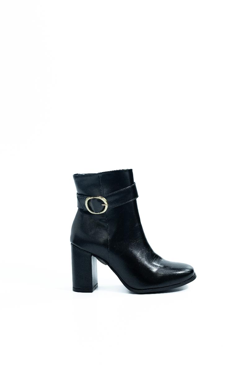 Bota Preta com Salto Bloco, Fivela Lateral Dourada e Bico Arredondado ? Vanucia