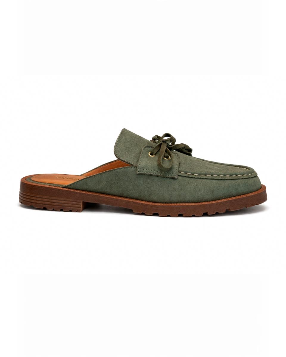 O mule feminino da Vanucia é a combinação perfeita entre elegância e praticidade. Feito em camurça verde, o modelo traz um visual moderno com inspiração clássica, além do detalhe em amarração que dá um toque especial ao design.