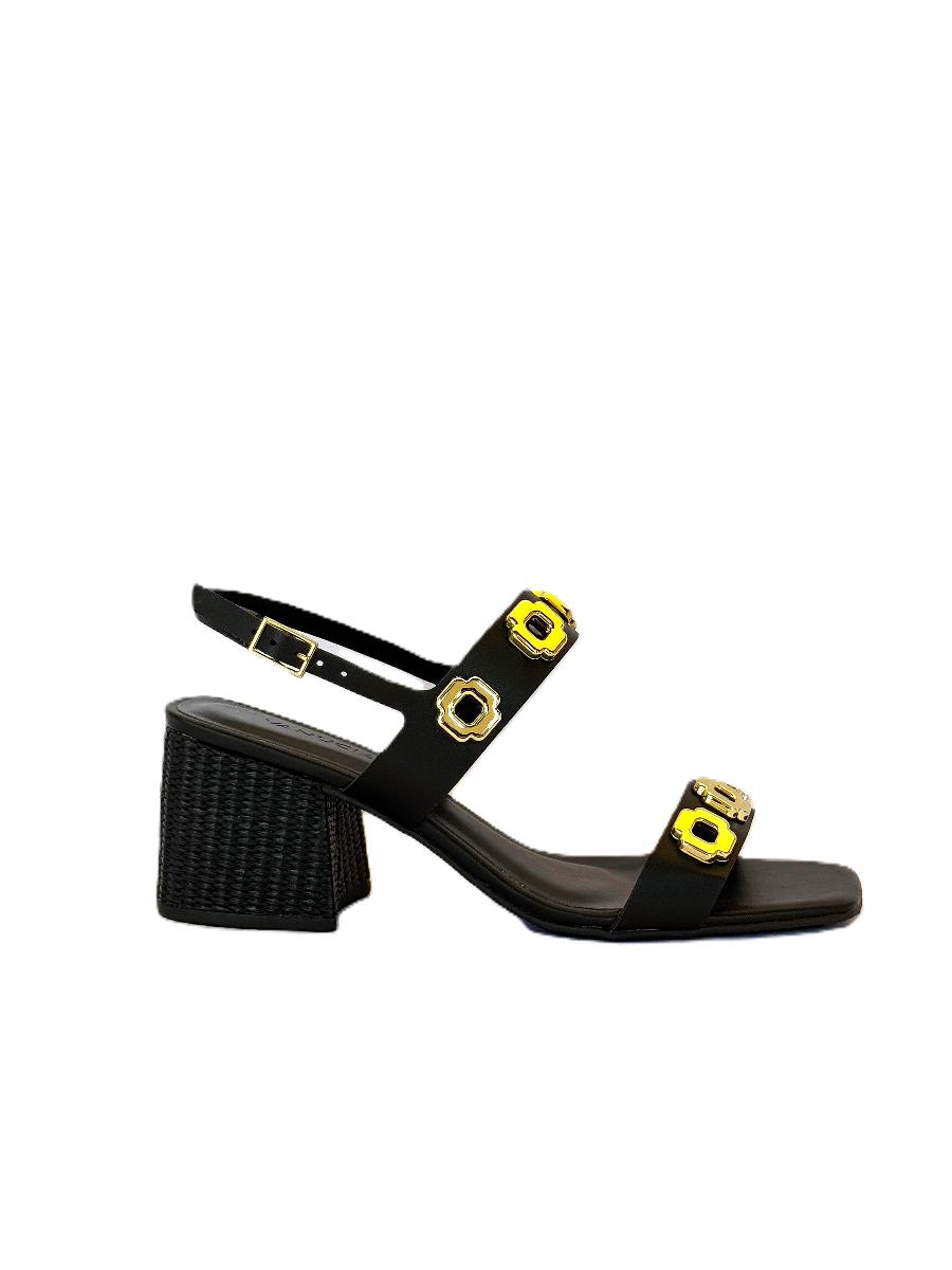 Sandália Salto Bloco Preta com Tiras Douradas - Conforto e Estilo em Cada Passo