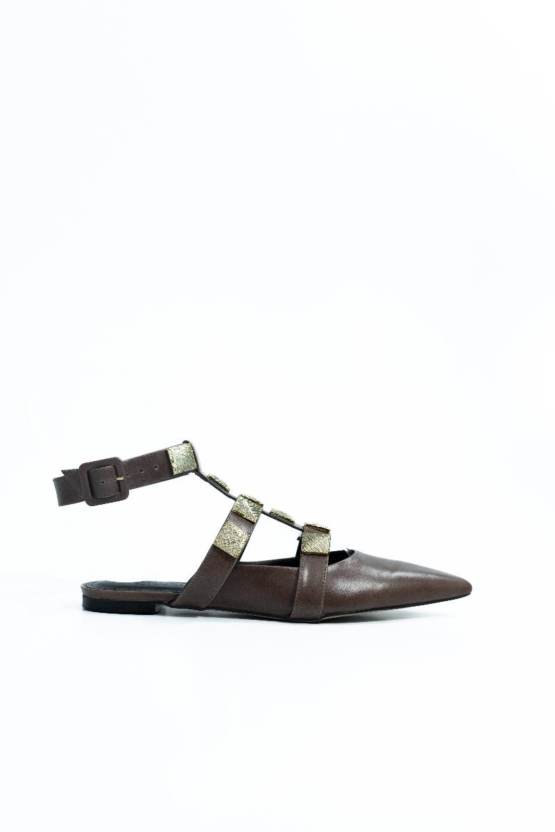 Slingback Vanucia com Detalhes de Aplicação Quadrada Dourada nas Tiras