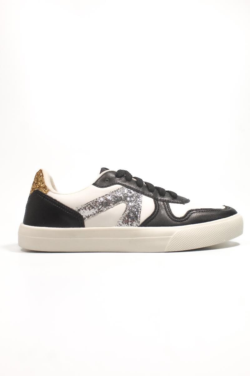 O equilíbrio perfeito entre ousadia e sofisticação. O tênis Glitter Black & Gold da Vanucia combina o contraste do preto e branco com detalhes em glitter prateado e dourado, criando um visual moderno e irresistível. Confortável e versátil, é aquele calçado que vai do dia a dia ao look noite sem esforço ? sempre com muito brilho e estilo.